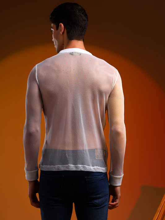 Full-Sleeved White Net T-Shirt