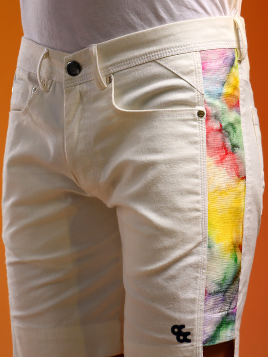 White Shorts with Multicoloured side panels